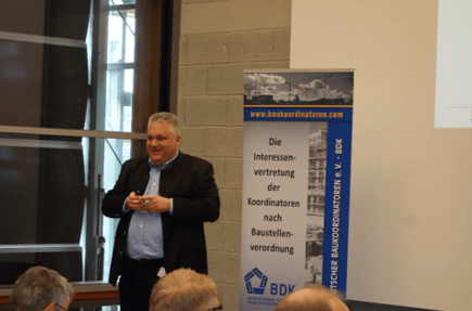 einem sicheren Baubetrieb und sicherer Baustellenorganisation im Vordergrund. Für den Arbeitsschutz ist und bleibt weiter der Unternehmer zuständig. „Wir werden darauf achten, dass bei der geplanten Novellierung der Baustellenverordnung die EU-Richtlinie umgesetzt wird“, sagt Stefan Deschermeier. Auch der Wunsch der anwesenden Teilnehmer und Mitglieder ist es, die bisherigen Aufgaben beizubehalten und keine neuen Rechtsgebiete und Themenfelder hinzuzufügen. „Insbesondere Zusatzinteressen, wie der Arbeitsschutz als originäre Aufgabe der Arbeitgeber und Unternehmer, sollen zukünftig keine Aufgabe für unsere Koordinatoren auf Baustellen sein“, mahnt der Präsident des Bundesverbandes Deutscher Baukoordinatoren.